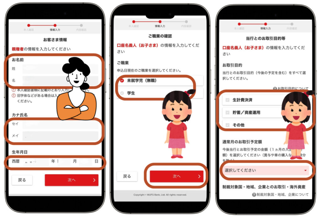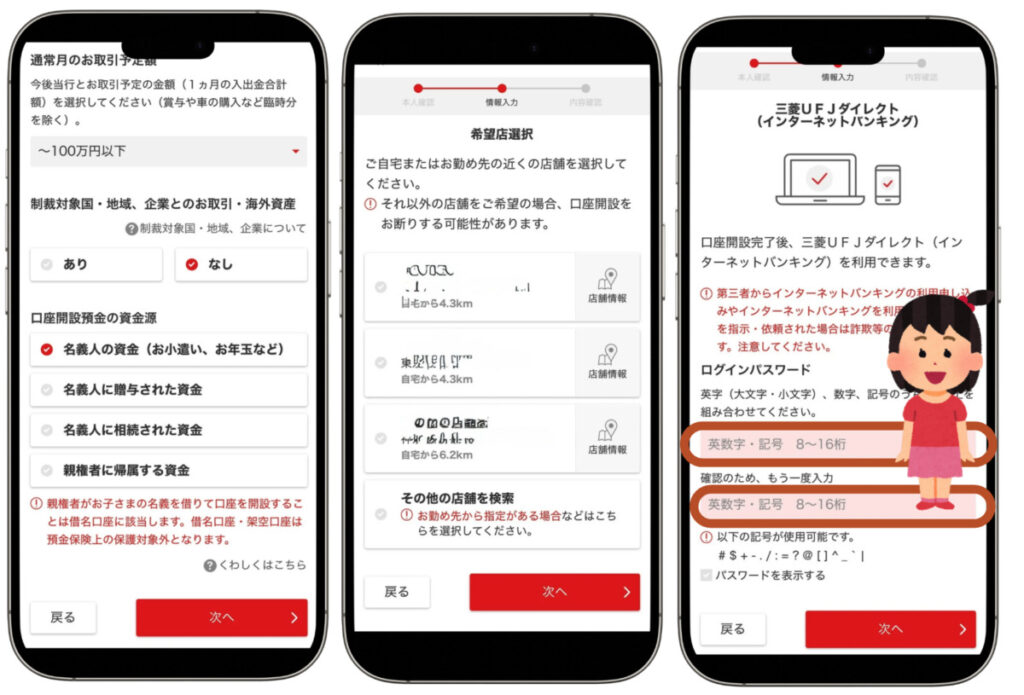 上記設定をしてから、三菱UFJ銀行の口座開設を進めていきましょう。