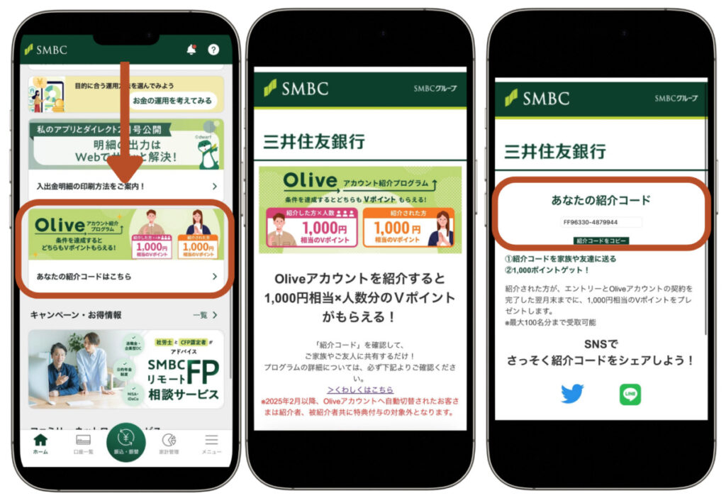 紹介コードは銀行口座開設後、1週間程度でアプリ上に表示されます。