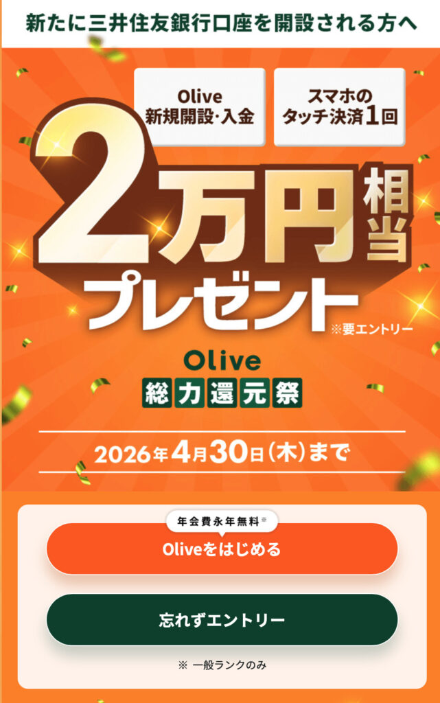 - Oliveの口座開設キャンペーン